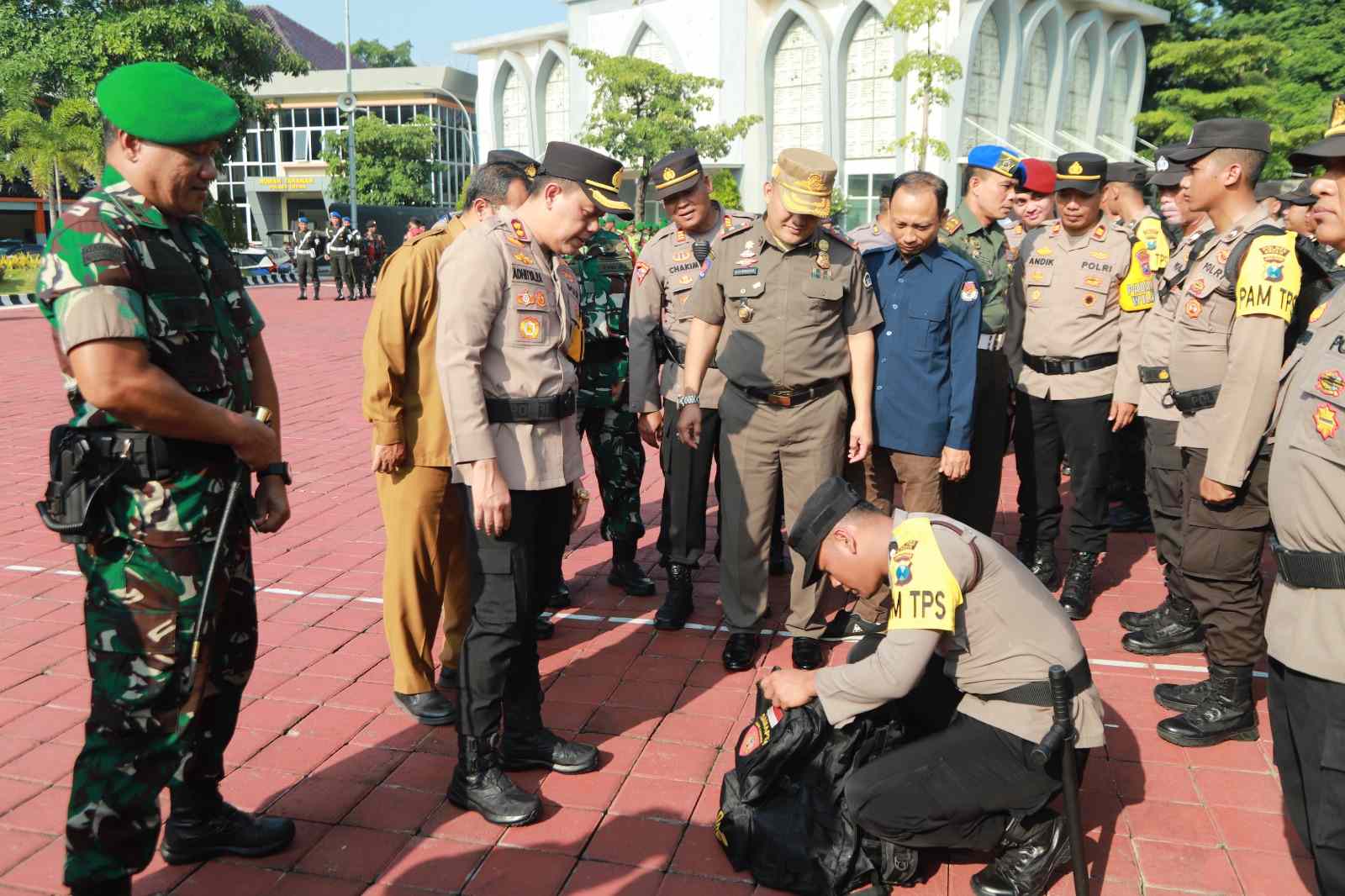 Kapolres Gresik AKBP Adhitya Panji Anom memimpin apel pergeseran personel pengamanan Tempat Pemungutan Suara (TPS)…